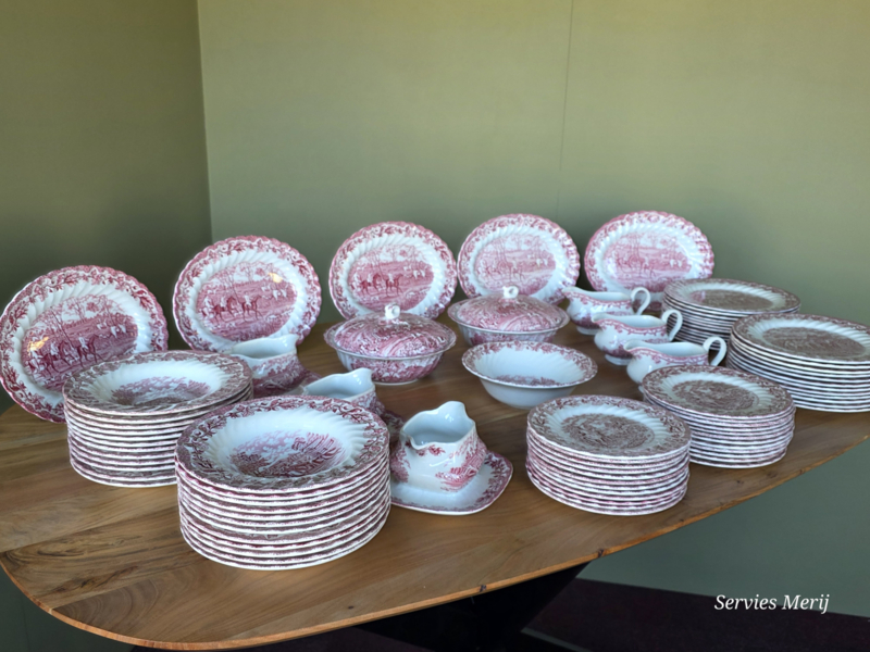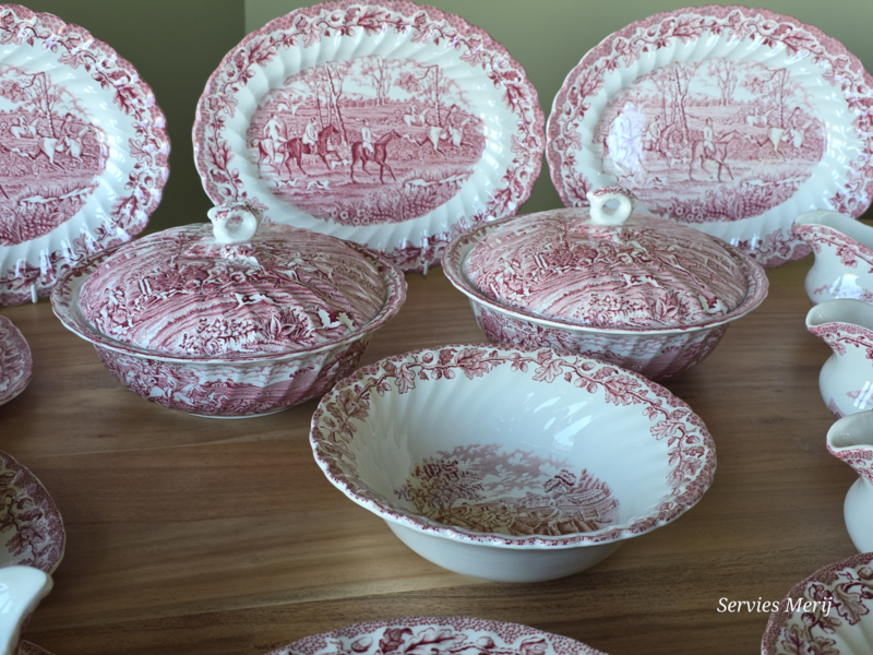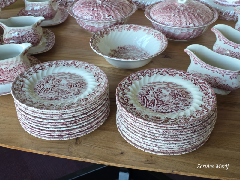 Engels rood Jachtservies Myott's Country Life RoomstelIn mooie staat