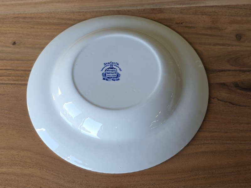 Engels blauw Woods Burslem England Seaforth diep bord 23 cm