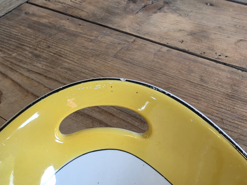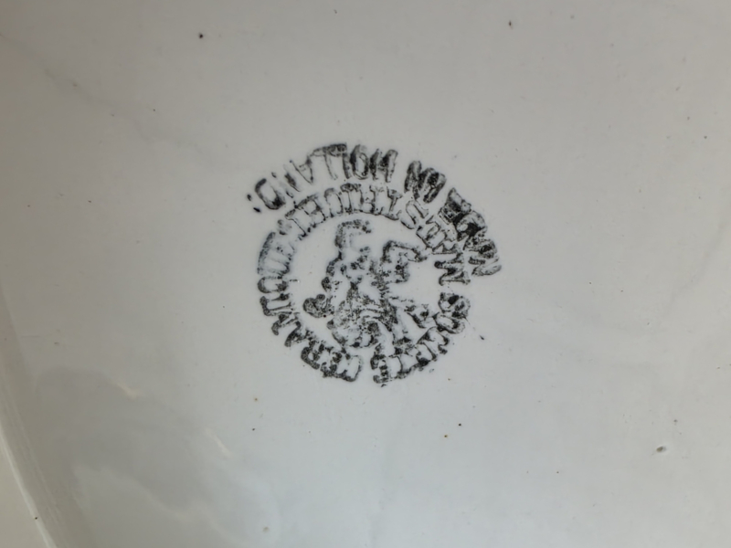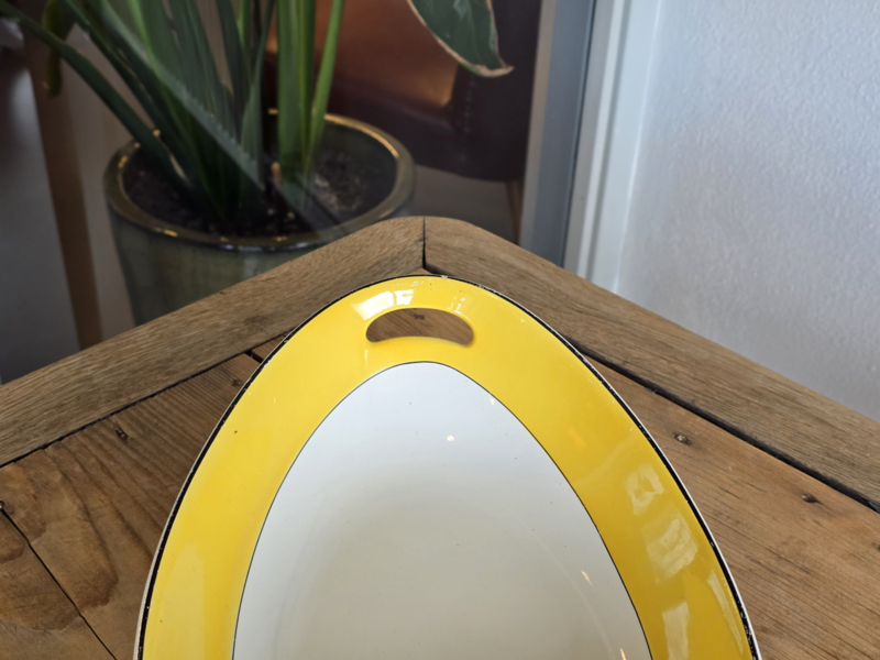 een klein pitje op de bovenrand van het oortje, verder in mooie staat,