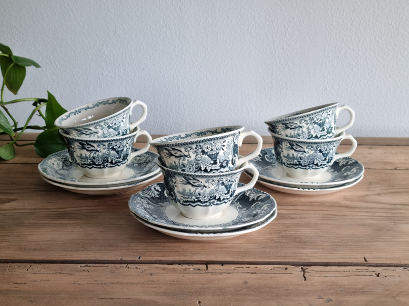 Victoria Groen Societe Ceramique set 6x kop en schotel