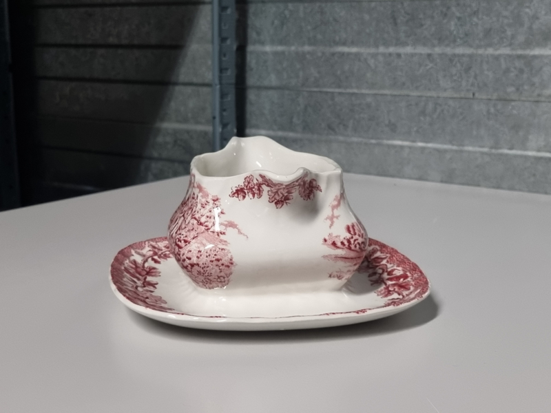 Engels rood Myott's Country Life Sauskom op onderschotel