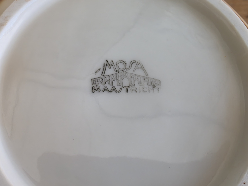 Vintage Vaasje Mosa Maastricht Art Deco oranje met grijs en bruin