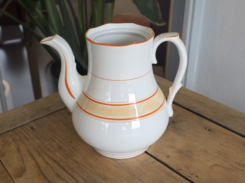 in mooie staat, zónder deksel, de hoogte tot aan de bovenrand is 17 cm in voorraad: 1x Societe Ceramique vintage/retro wit met oranje