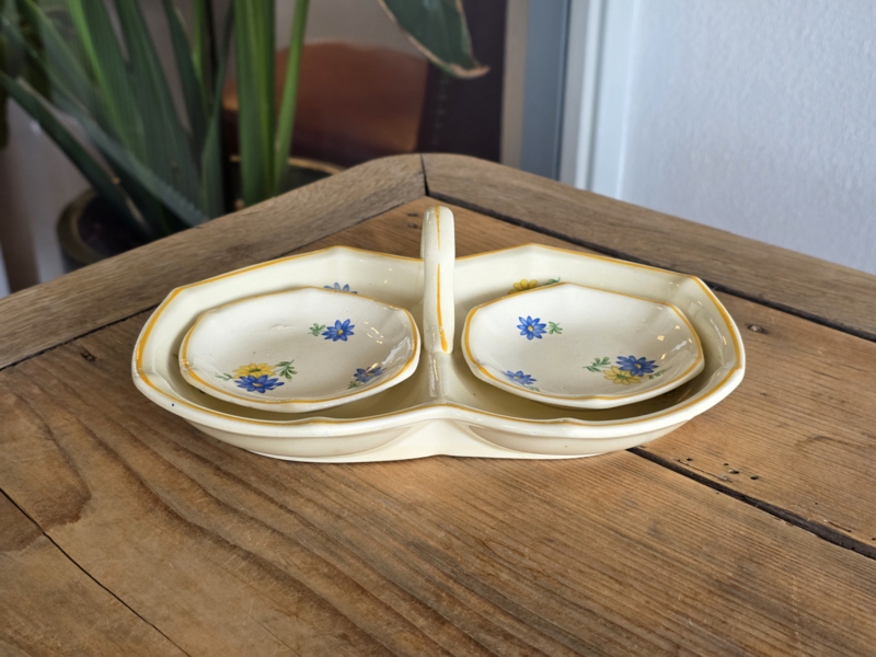 in mooie staat 1x schaal met greep, 2x kleine schaaltjes in voorraad: 1x dit setje Societe Ceramique