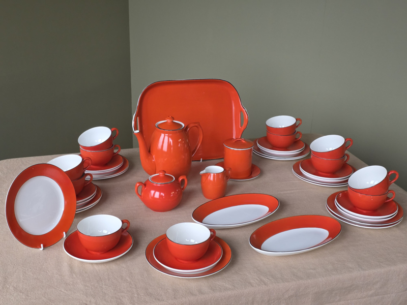 in mooie staat, 1x theepot, 1x kannetje en 1x suikerpot in voorraad: 1x Societe Ceramique Art Deco
